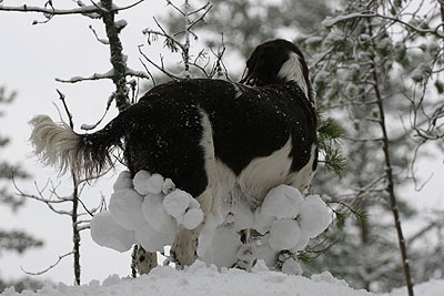 Pisama sukeltaa, etsimässä lumimyyriä?