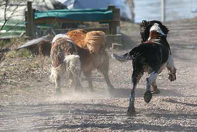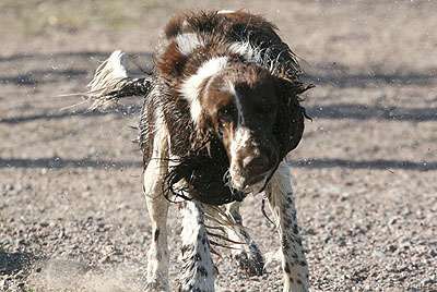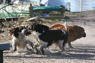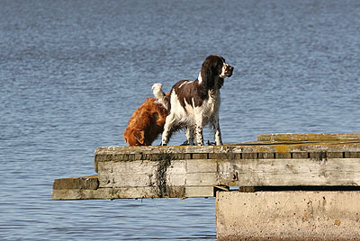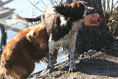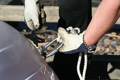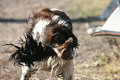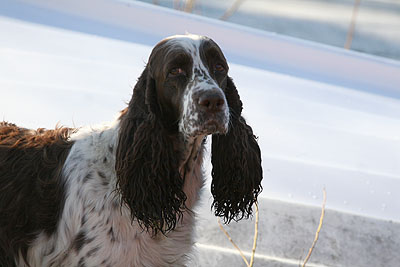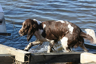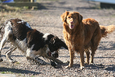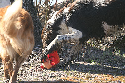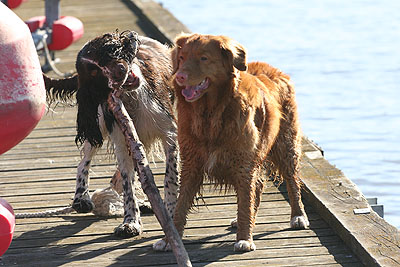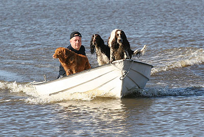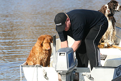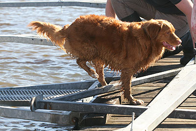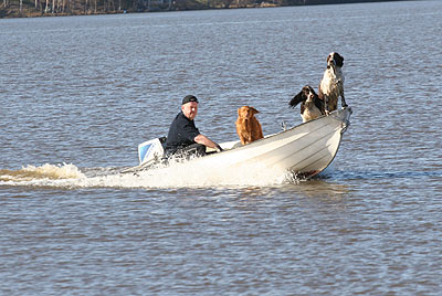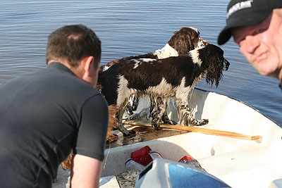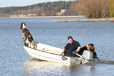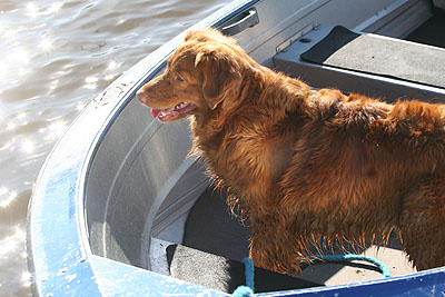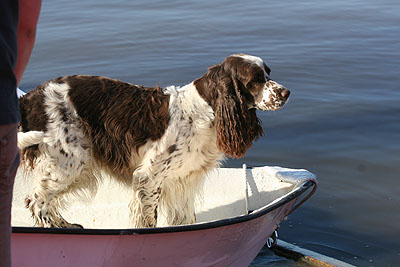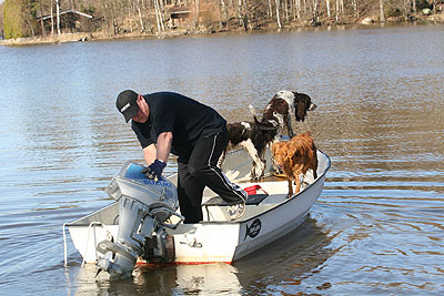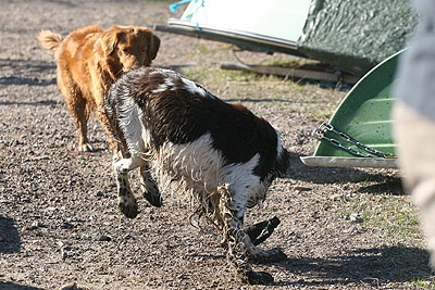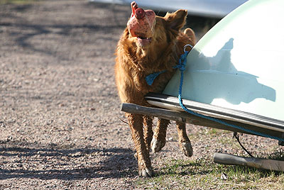 Sanni tutkii jonkun muun veneen, lähtisikö se myös liikkeelle? (kyljessä jo hyvin parantunut vekki, karvat vaan siilinä)