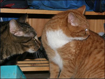 Kissavieras Rasmus (siskon) ja Mosse.