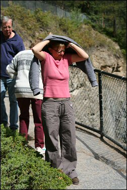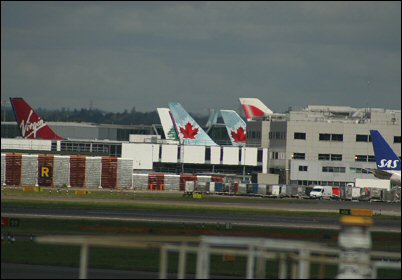Sitä tuli taas jännitettyä niin ettei unille päässyt ajoissa. Pakkaus jätettiin viime tinkaan, oikeastaan aivan tarkoituksella, tietäen, että aika on vaan jotenkin saatava kulumaan yöllä. Tavarat oli kyllä valmiina pitkin sänkyä ja sohvaa. Edellisen päivän aikana tuli osteltua kaikkea yleistarpeellista; Jaakolle housuja, paitoja ja sukkia, mulle kaikkea kivaa uutta, muuten vaan. ;) Tytöt vietiin hoitoon illalla; Sanni ja Alma Tapiolaan anopin luokse, Ilona ja Elmo-pupu Sallan luokse vanhaan kämppään. Onneksi sitä niin jännitti itse, ettei hyvästelyistä koirien kanssa tullut mikään surunäytelmä. Käytiin yöllä vielä saunomassa. Puoli kolmen pintaan pienet unet, kello soi puoli neljä, faija oli meitä hakemassa neljältä Nummelasta. Kone lähti vasta kahdeksalta aamulla, mutta halusimme olla ajoissa varmistaen mulle ikkunapaikkaa molemmilta lennoilta. Kentällä vuorossa oli siis vain odottelua. Lähtöselvitys meidän luukuilla aukesi vasta kuuden jälkeen. Selvityksessä oltiin aika passeliin aikaan; Helsinki-Heathrow -lennolla oli ikkunapaikka jäljellä vielä niin että Jaakko pääsi viereen, Heathrow-Calgary -lennolla oli tasan yksi (1) ikkunapaikka, Jaakko ei päässyt viereen, vaan yhtä riviä taaemmas käytäväpaikalle. Pidettiin kuitenkin tärkeämpänä että pysyn tolkuissani lennon ja sitä edeltävän ajan kuin vierekkäin istuskelua. ;) Tsekkauksen läpi minä vein läppärin, Jaakko repun missä kamera. Kysyin vielä ennen linjalle menoa ettei vaan laukkuun ole laitettu mitään killereitä. Joo, ei ole. Mitä vielä. ’Onko tämä kannettavan laukku sinun’, öööh, juu. :P ’Otapas avaimet sieltä esille’, novoe.. Ei se Jaakkokaan vielä siinä vaiheessa ymmärtänyt, katsottiin mielenkiinnolla mitä ihmeellistä isossa avainnipussa olisi ja hups, pistihän se siitä silmään, pieni linkkuveitsi. :D Jaakko jotain mumisi, mutta ei se virkailija muuta kuin ok’n siinä virkkonut. Matka siis jatkui, veitsen kanssa. Katsottiin mistä meidän putki lähti koneeseen, vaihdettiin Kanadan dollareita ja syötiin nautiskellen aina niin halpaa kenttäsapuskaa (karjalanpiirakkaa ja teetä). Ja niin se aika vaan riensi, siirryttiin passin tarkastuksen läpi omaan aulaan ja pian sen jälkeen päästiinkin jo koneeseen. Putkessa harhailu meni tällä kertaa oikein hyvin, paikka löytyi mukavasti aivan viimeisestä rivistä. Ei ne sinne sitä jalkatilaa olleet edelleenkään saaneet lisää.. Lento Helsingistä Heathrow’n kentälle oli vain 3h. Eipä sen voinut sanoa kivuttomasti menneen, mutta aamupalan syömisen (munakokkelia juustolla ja kinkulla, sämpylää, ananasmehua) ja turbulenssin ihmettelyn jälkeen olikin melkein jo aika laskeutua. Oltiin myöhässä kun saavuttiin Englannin ilmatilaan, tästä johtuen menetettiin laskuaikamme ja jouduttiin killumaan puoli tuntia ylimääräistä ilmassa. Eipä hätä ollut sen näköinen, vaihtoaikaa meillä oli seuraavaan koneeseen 6h. Hauska se oli silti ympyrää kiertää, samoja liikennesotkuja katsellessa. ![]() Jaakon koneirvailu. ![]() Sonjan 'apua'-ote kauhukahvoista. ![]() Näkymää ikkunan takaa. ![]() Kaunista. ![]() Ei onneksi lähellä tuo toinen kone! :o ![]() Pieni liikenneympyrä. ![]() Tuosta vähän näkee tuota pyörimistä. ![]() Kohta rysähdettiin maahan.. Heathrow’n kenttä olikin sitten luku sinänsä. Saatiin jo ohjeet Helsingin päässä kuinka sukkuloidaan terminaalista 1 terminaaliin 4. No, ensinnäkin, olihan ne ohjeet siellä ihan selkeät, mutta jonot aivan järjettömät. Valittiin pienen epätoivoisen seisoskelun jälkeen Lontooseen menevä linja (aivan tyhjillään ;)) ja löydettiin luojankiitos sieltä vessa. Valitettavasti tämän jälkeen oli palattava jonoon takaisin ja odotettava ikuisuudelta tuntuva aika. Meidän matkakapsäkit siirtyi omia aikojaan seuraavaan koneeseen, ei tarvinnut kuin käsimatkatavaroita kuljettaa mukana. Vessassa ollessaan Jaakko sanoi hyvästit linkkuveitselleen, hyvä niin, koska tarkastus Heathrow’n päässä oli huomattavasti tiukempi, muun muassa kengät oli riisuttava pois ja laitettava hihnan vietäväksi. :P Nyt ei löytynyt killereitä mun tavaroiden joukosta ja pukeutumisen jälkeen seurattiin 4. terminaalin viittoja ja päädyttiin bussiin metron sijasta. Mitään metroa kai koskaan ollutkaan, jotenkin vaan tulkitsi sitä karttaa oudosti. On muuten suht villi tunne kun vastaantuleva liikenne ohittaa meidän bussin oikealta! Uutta tarkastusta ei ollut enää missään, me vaan tupsahdettiin oikeaan terminaaliin. Vaikka harhailu kesti jotain about puolitoista tuntia ja konekin oli myöhässä, silti meillä oli odotteluaikaa jäljellä aivan liikaa. Katseltiin ympäristöä hieman, käveltiin ja istuttiin hauskaan paikkaan mistä näki laskeutuvat ja nousevat koneet. Nukuin puoli tuntia pää Jaakon polvella penkillä lojuen (enpä ollut ainoa) ja sitten jaksoikin taas harhailla ja etsiä ruokapaikkaa. Liikkeitä oli paljon, ruokapaikkojakin monia erilaisia. Valittiin hauska hyväntuoksuinen tiski mistä sai wrapin (mulle kana-jalapeno, Jaakolle lihapulla) ja omatekoisen limpparin (hedelmä ja omena). ![]() Iso nenäkone. ![]() Kuten myös ja kenttää. ![]() Koneiden erilaisia takapuolia. ![]() Vedin zetaa.. ![]() Jaakko luki koneesta pöllimäänsä hesaria. Suklaapuodin ja Kanadantuliaisten jälkeen katselemaan koneita, luin kirjaa, Jaakko nukkui vuorostaan. Ihmeen nopeasti lopulta aika kului, vaikka oma jännitysmomenttinsa oli monitorit, mistä piti näkyä lähtöportti jatkolennolle, ja ne vaan sammuili vuoronperään. Klo 15.15 paikallista aikaa piti olla lähtöselvityksessä, taidettiin me saada portin numero joskus kymmentä yli. ;) (terminaali oli todella iso, päästä päähän käveli ~25min) Lähtöselvityksessä kun tsekattiin meidän liput (turbaanipäinen G4S-vartija btw), järjesteltiin samalla vähän paikkoja ’Ooh, tässä on käynyt virhe Suomenpäässä, tehän matkustatte yhdessä?’, kyllä 