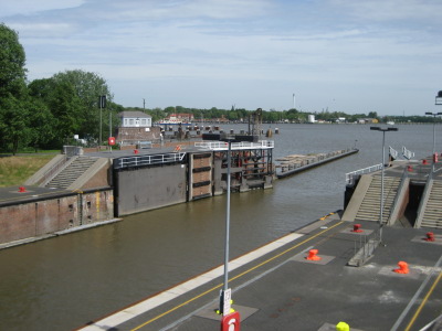 Holtenauhun. Tällä kertaa ruuhkaa ei ollut ja meidät ohjattiin uuteen sulkuun.