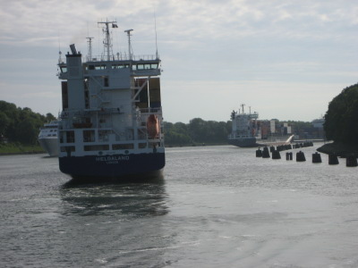 paikallinen luotsi vaihtui kyytiin. Tämä luotsi hoiti aluksen Kielin kanavan sululle.