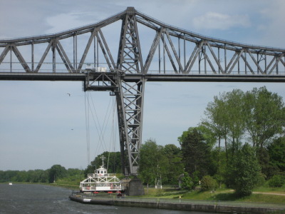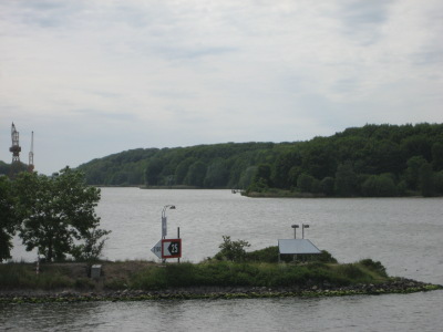 että sen näki selvästi. Brunsbuttelin kaupungin kohdalla Kielin kanava haarautuu Elbestä.