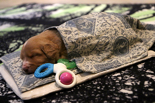 Lapset keksivät, että peittelemällä pennut, ne saavat olla meidän seurana vielä hieman pidempään.
