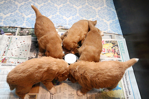 Toisto. Pentujen 4vk-kuvat pentupäiväkirjassa.