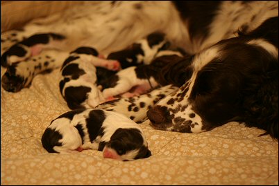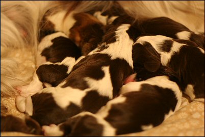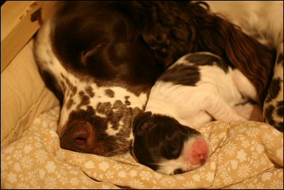 Ilona nukkuu kaiken aikaa pentujen kanssa. Etualalla nukkumassa Päivi.