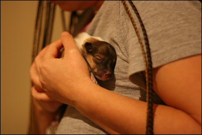 Ruokahetki sylissä. Piti tassuillaan aina ihanasti kädestä kiinni.