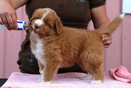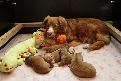 Ehkä meille jääkin sitten viimein se tolleriuros, mistä olen jo useita vuosia haaveillut, olin jo yhtä viittä vaille aikanaan varaamassa Kanadasta, mutta meni lopulta pupu pöksyyn ja jäi hankkimatta. Mikäs sen upeampi, kuin Estan ja Tristanin poika. Aika näyttänee mitä näistä muruisista kehittyy.
