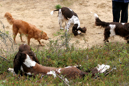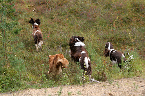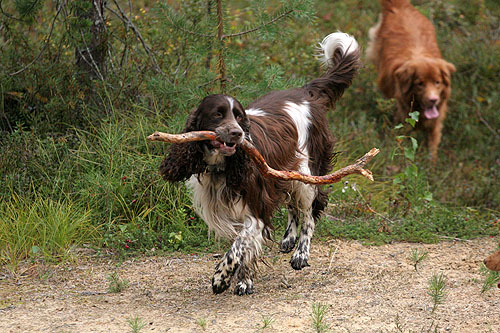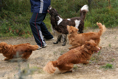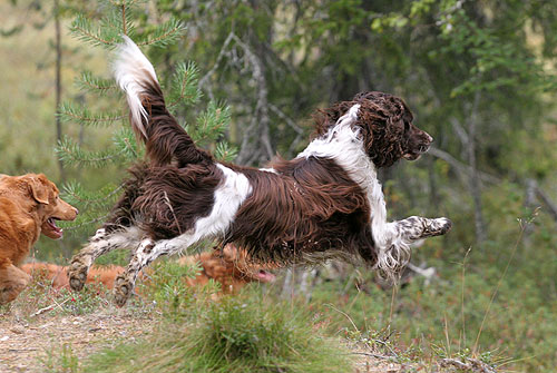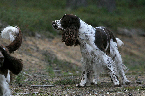 Pitkäkaulainen, monikoipinen springeri. Pisama, Ilona.