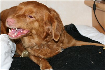 Ei se ole vihainen. Se vaan syö. ;)