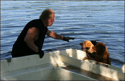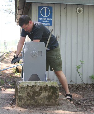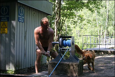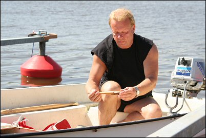 Jaakko hinaamassa venettä.