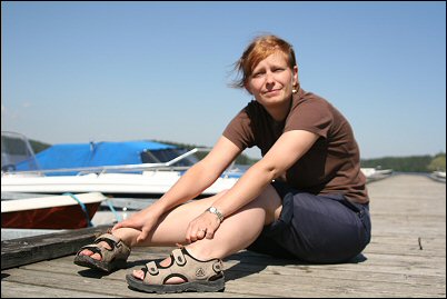 Veneilijä-Sonja laiturilla.